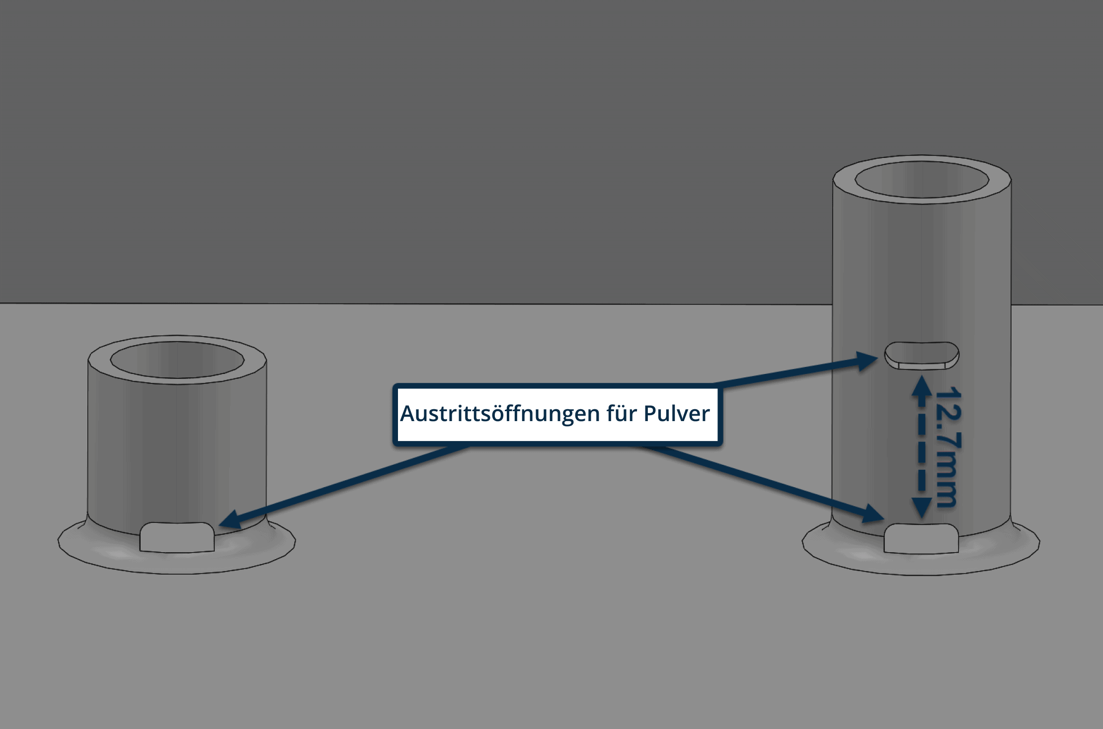 - Für tiefe Bohrungen (> 12,7 mm), brauchen Sie mehrere Austrittspunkte entlang der Bohrung.