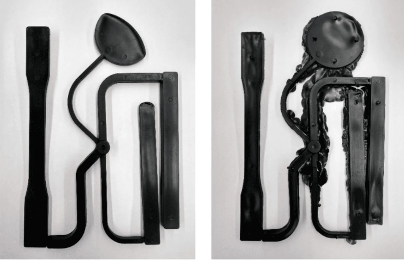 | Surface Delamination: Peeling of the upper layer of the molded part, which exposes layers beneath. | Incompatible materials, contamination | • Use single-material parts