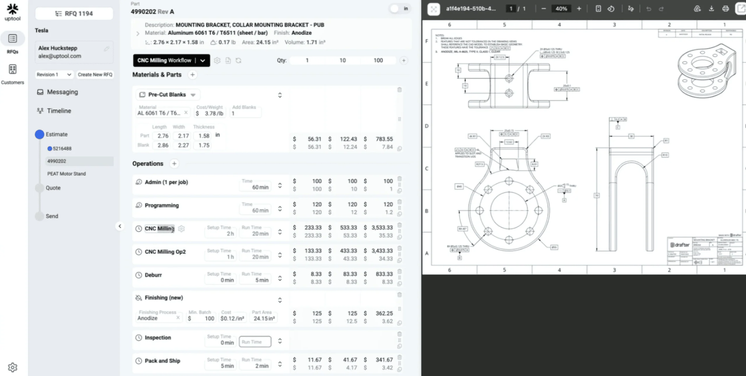 The first 5 to 10 minutes of every quote is just downloading data, organizing files, and loading them into CAD or PDF viewers to figure out what the customer actually wants. They have to make sure that there is no conflicting information.