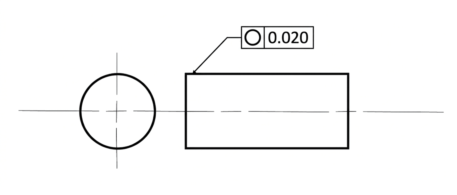 - No Zone Symbol: Because circularity uses the default 2D tolerance zone, no specific zone shape symbol (like a diameter symbol) is required in this block.
