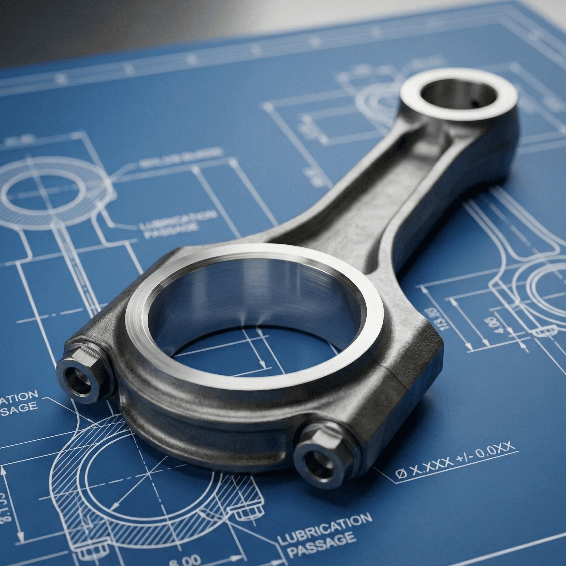 The bores on the small and large ends of the connecting rod are responsible for power transfer, even load distribution, and the maintenance of a uniform oil thickness for lubrication. These bores must be circular enough to maintain the microscopic clearances necessary for hydrodynamic lubrication.