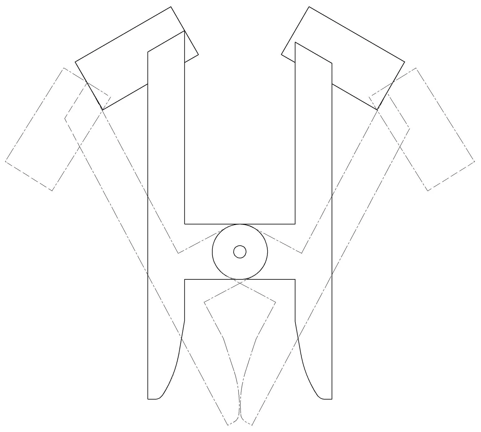 Nos decantamos por una nueva solución: una pinza tipo pinza de la ropa fabricada con dos carcasas de chapa cortadas con láser, unidas por un tornillo de hombro y cerradas con un muelle de torsión. Al principio, añadimos dos conductos, uno en cada asa, para sujetar la manguera. Pero esto hacía que el aparato pesara más y resultara incómodo de usar con una sola mano.