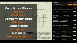 Il détecte la géométrie, les caractéristiques critiques et toutes les annotations dans les plans de fabrication. Il exécute des contrôles de base — cotes manquantes, champs vides dans le cartouche, spécification des matériaux, symboles d’état de surface. Bref, tous les contrôles que vous feriez habituellement.