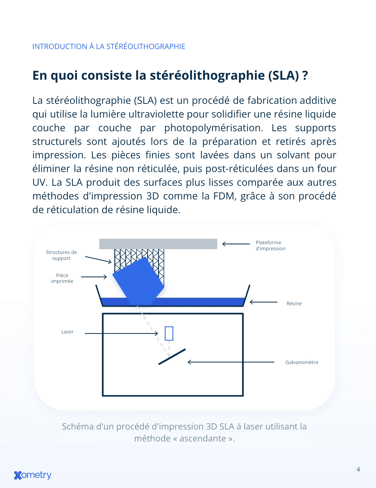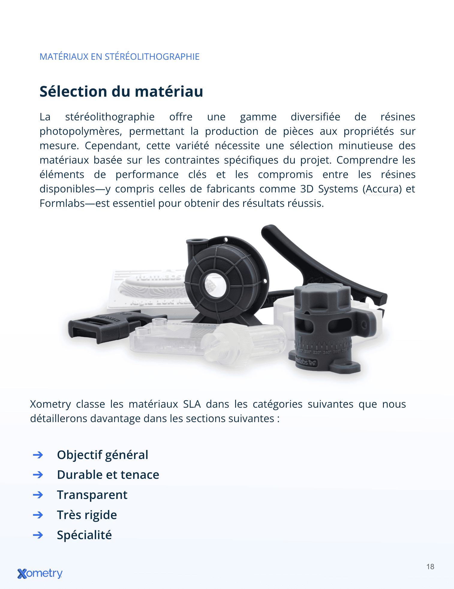 Transformez vos concepts CAO les plus complexes en pièces fonctionnelles haute résolution. Ce guide complet décrypte toutes les spécifications techniques du SLA — jeux, perçages, surplombs — pour optimiser vos impressions. Téléchargez votre exemplaire et profitez de l'expertise Xometry pour garantir la précision de vos pièces imprimées en 3D.