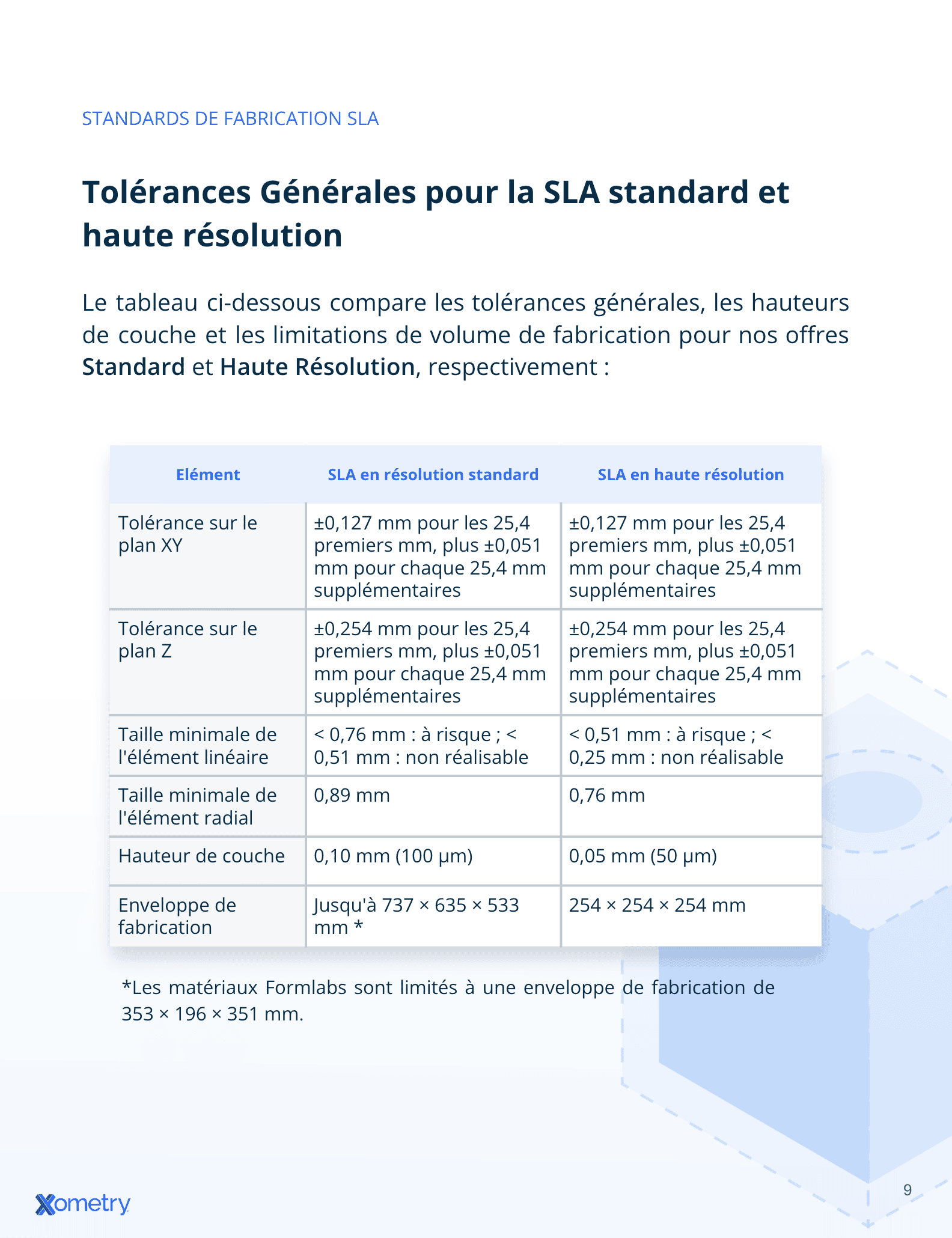 - Standards de fabrication SLA